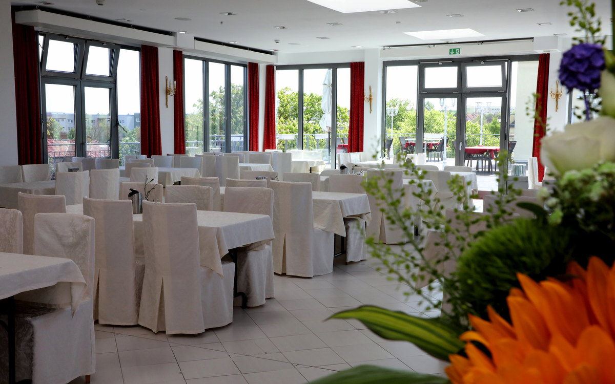 Im hauseigenen Panorama-Restaurant genießen Sie morgens ein reichhaltiges Frühstück vom Büfett mit Blick auf die Stadt und das Wahrzeichen der drei Türme von Bad Langensalza. Am Abend werden Sie mit herrlichen kulinarischen Spezialitäten verwöhnt.