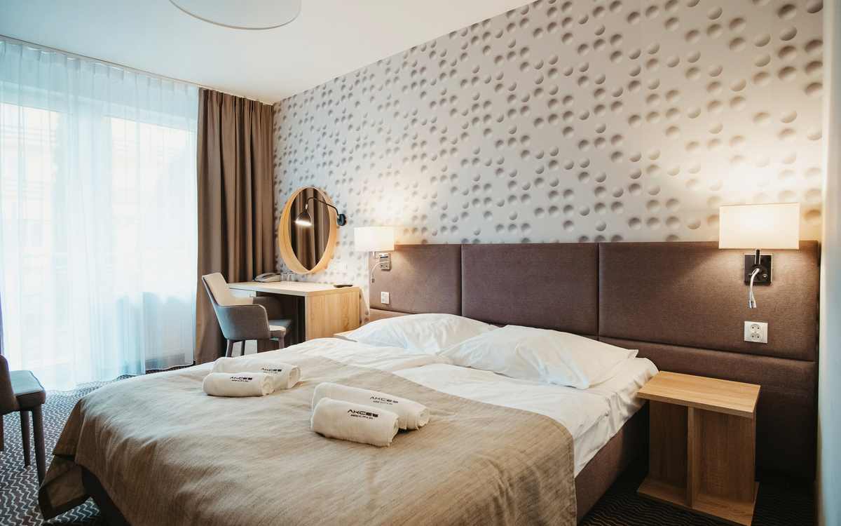 Das Hotel Akces verfügt über ein modern ausgestattetes Behandlungszentrum. Hier werden Ihnen wohltuende Kur-Anwendungen aus den Bereichen Massage, Physio-, Kinesio- und Hydrotherapie sowie erfrischende Wellnessbehandlungen (gg. Aufpreis) angeboten. Entspannte Stunden verspricht der Besuch des hauseigenen Schwimmbads (12 x 8 m, ca. 30°C), Whirlpools oder der Sauna. Ihre körperliche Fitness können Sie im hoteleigenen Fitnessraum trainieren.