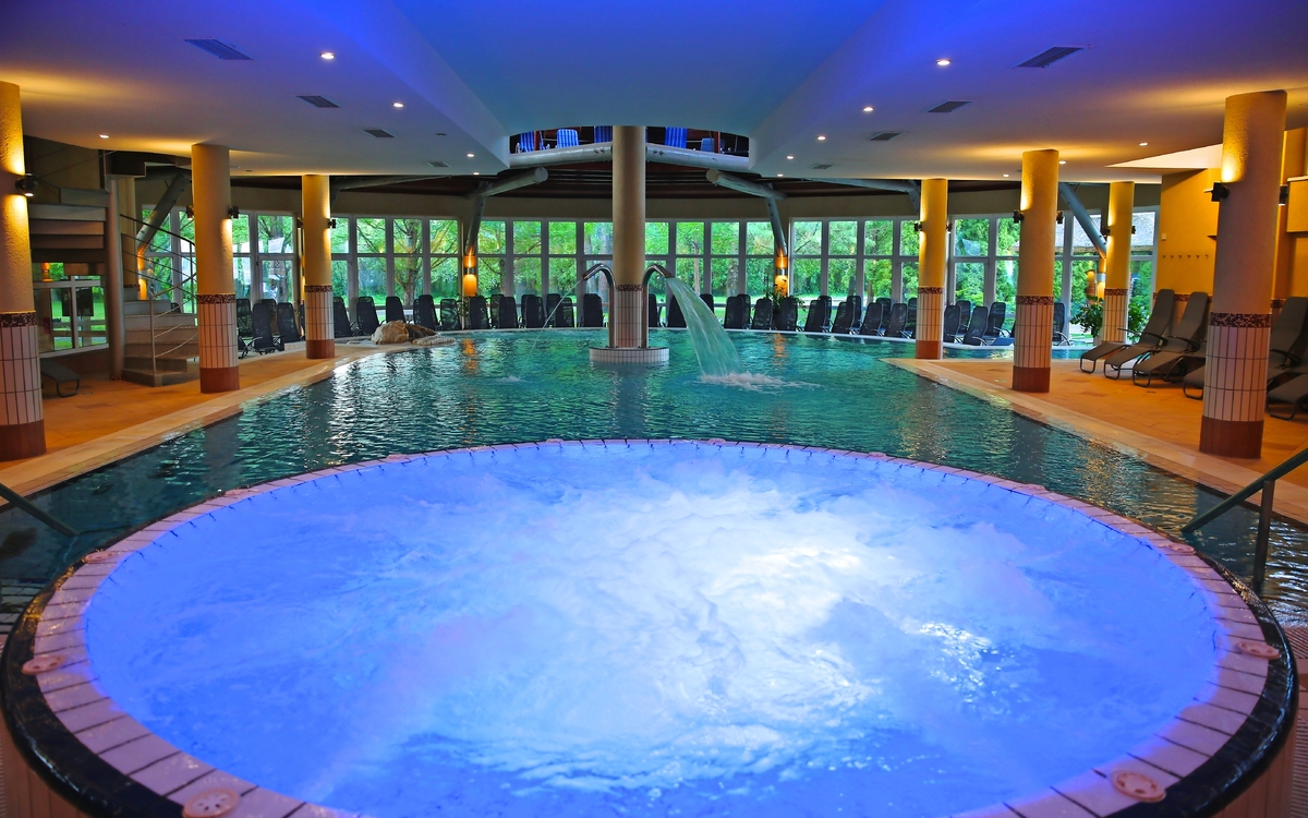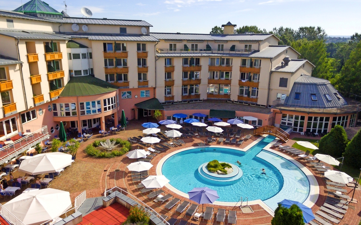 Das berühmte Heilwasser und der wertvolle Schlamm des Sees sind zusammen mit der Kompetenz des medizinischen Teams die Basis der therapeutischen Anwendungen. Die Anwendungen finden im Rahmen der traditionellen Hévízer Heilkur statt, zu denen u.a. Schlammpackungen und medizinische Massagen gehören. Dazu kommt das Spektrum der Balneotherapie und Elektrotherapie. Der Wellnessbereich überzeugt mit Innen- und Außenpool (ganzjährig geöffnet, beide ca. 31°C), Meditationsbecken (ca. 34°C), Heilwasserbecken (ca. 36°C) und Relaxbad (ca. 34°C) mit Panoramafenster. So richtig ins Schwitzen kommen können Sie in der Aroma-, finnischen-, Garten- oder Lichtsauna. Alternativ können Sie die Meer-Salzgrotte besuchen.
