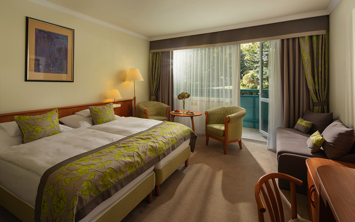 Das als „Hotel des Jahres" ausgezeichnete NaturMed Hotel Carbona, liegt in einem vier Hektar großen Naturpark, ca. 500 Meter vom Hévízer Thermalsee entfernt.