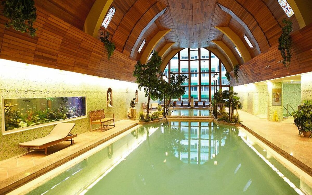 Auf insgesamt 1.000 m² Wasserfläche stehen Ihnen im Spa-Bereich des Hotels ein Thermal-Hallenbad mit zwei Becken im römischen Stil, eine große Schwimmhalle (25 x 12,5 m), ein ganzjähriges Freibad mit Erlebniseinrichtungen und Liegewiese, Kneipp-Becken, Whirlpool, Junior-Becken (geöffnet von Juli-August) und ein angenehmer Ruheraum zur Verfügung. Die rundum erneuerte Sauna-Oase bietet Ihnen neben einer Textil-Sauna auch eine Infrarot- und Kryosauna. Für Entspannung sorgen auch traditionelle und fernöstliche Massagen sowie Verwöhnmassagen mit Bio-Aloe Vera und Aromamassagen.