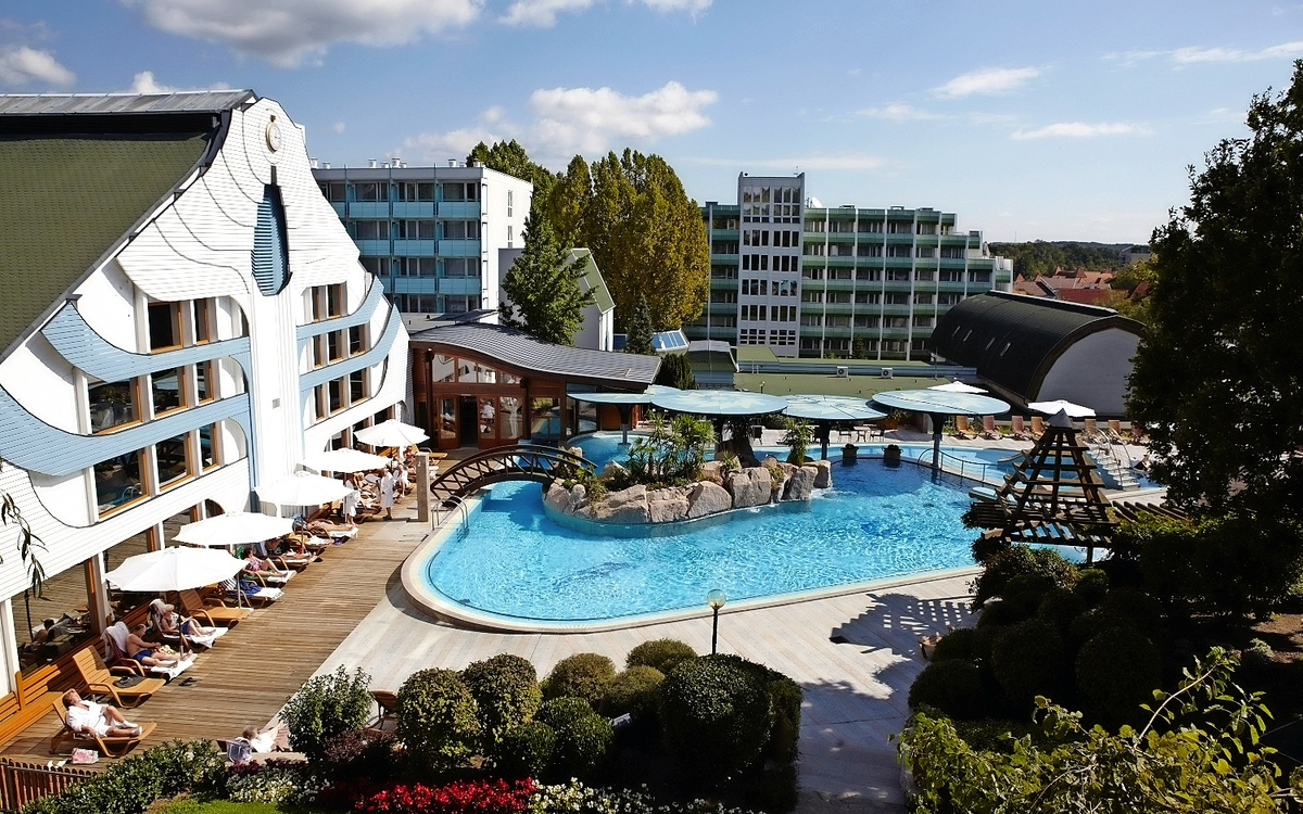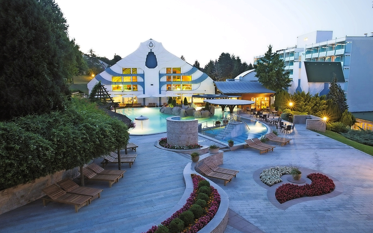 Das zentral gelegene 4-Sterne-Superior Hotel - nur ca. 500 m vom Thermalsee entfernt - ist mit zahlreichen Preisen ausgezeichnet und erwartet seine Gäste mit großen Badelandschaften und qualitativ hochwertigen Kur- und Wellnessleistungen.