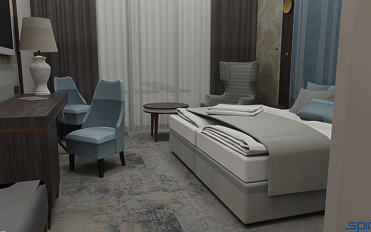 Das Resort besteht aus zwei miteinander verbundenen Gebäuden und einem separaten Appartementhaus. Die 245 Zimmer des Resorts sind modern und luxuriös ausgestattet und verfügen über Dusche/WC, Föhn, Leihbademantel, Telefon, Sat.-TV, kostenfreien Internetzugang (WLAN), Minibar und Safe. Zimmer zur Meerseite sind gegen Aufpreis buchbar.