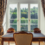 Die Sommerterrasse mit Aussicht auf den Park ist ein angenehmer Ort, um entspannte Stunden zu verbringen.